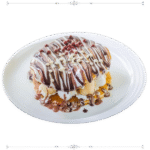 عجينة الكريب محشية بالموز والكريمة المغطاة بالشوكولا وبسكويت وزبدة اللوتس