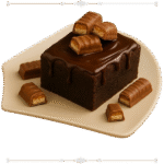 قطعة براونيز الشهية مغطاة بالشوكولا وبسكويت سنيكرز