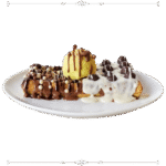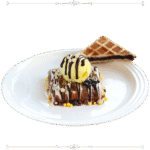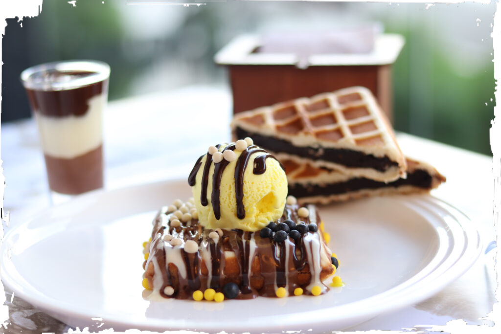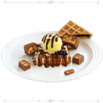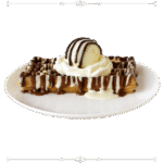 عجينة الوافل المقرمشة المغطاة بالشوكولا  والبوظة والقشطة
