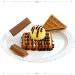 قطعة من الغوفر المحشية بالشوكولا و ببسكويت كيت كات والبوظة