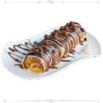 رول من عجينة الكريب الرقيقة محشية بالموز المغطاة بالشوكولا
