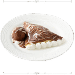 رول من عجينة الكريب محشية بالغزلة والبوظة المغطاة بالشوكولا