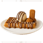 قطعة من الغوفر المحشية بالشوكولا المغطاة ببسكويت وزبدة اللوتس والبوظة